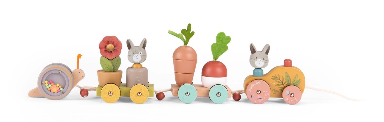Vi informerer hermed om, at Moulin Roty har besluttet at tilbagekalde 2 produktioner af Aktivitetstog - Trois Petits Lapins. Produktions-/Batch nummer findes på æsken eller på delene af aktivitetstoget :